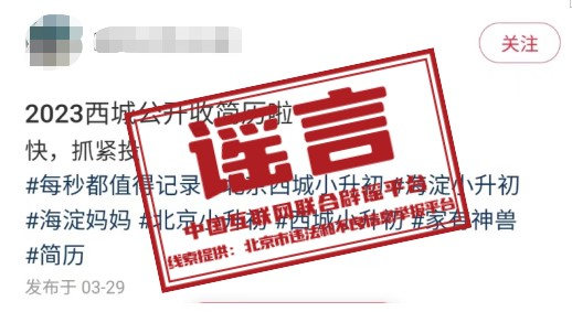 谣言:北京西城多所学校现场接收小升初简历投递?