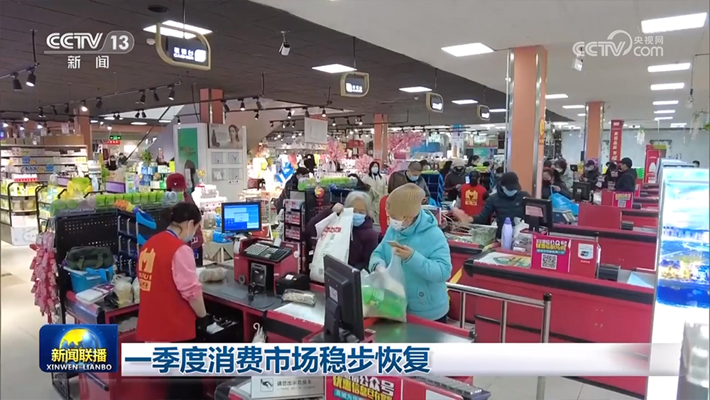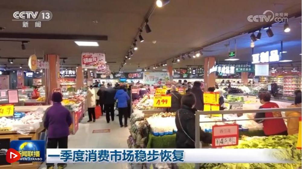 央视网消息(新闻联播):商务部数据显示,随着提振消费的各项政策措施落地见效,一季度,消费市场呈现稳步恢复态势。