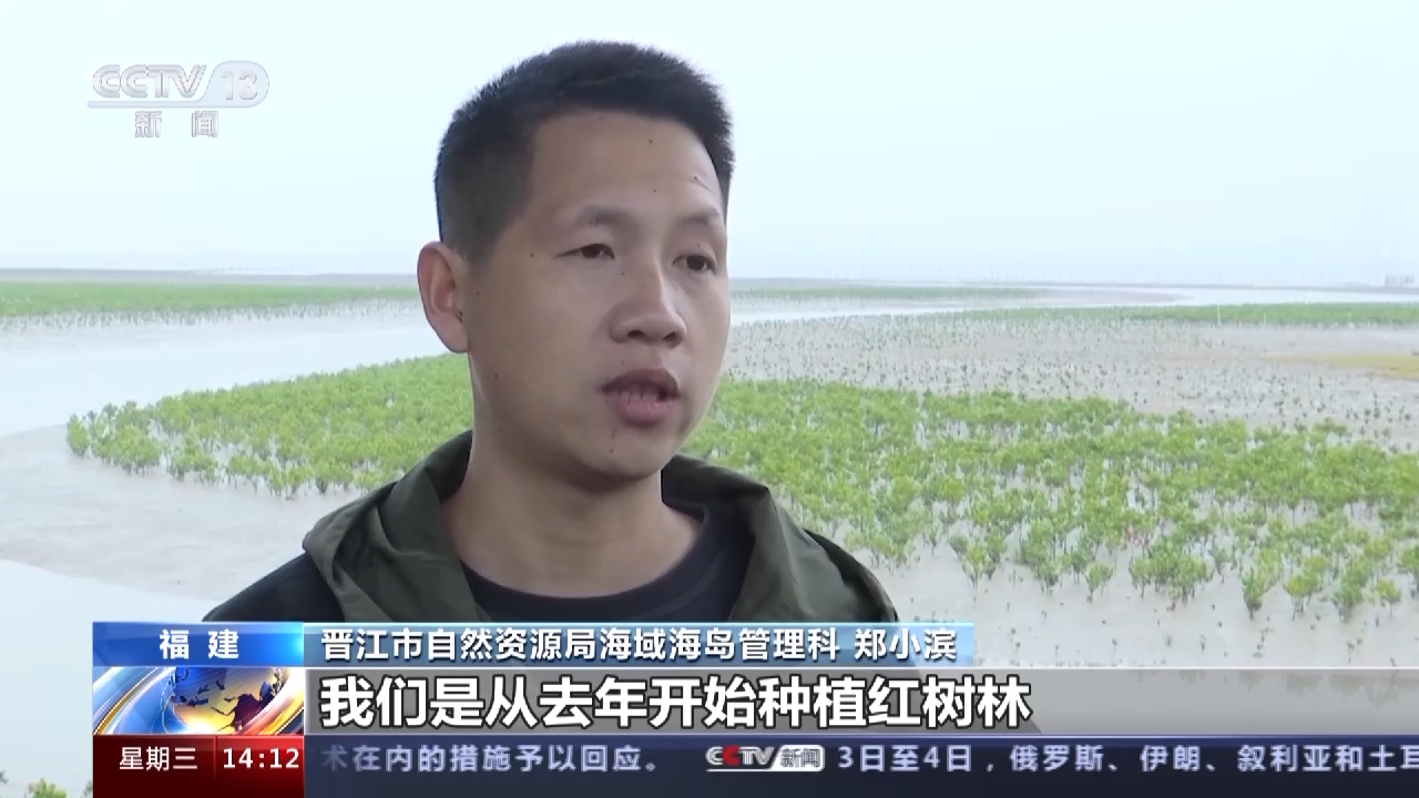 晋江市自然资源局海域海岛管理科 郑小滨:我们是从去年开始种植红树林,总的面积有2291亩,因为红树林对于咱们岸线有一个生态保护的作用。