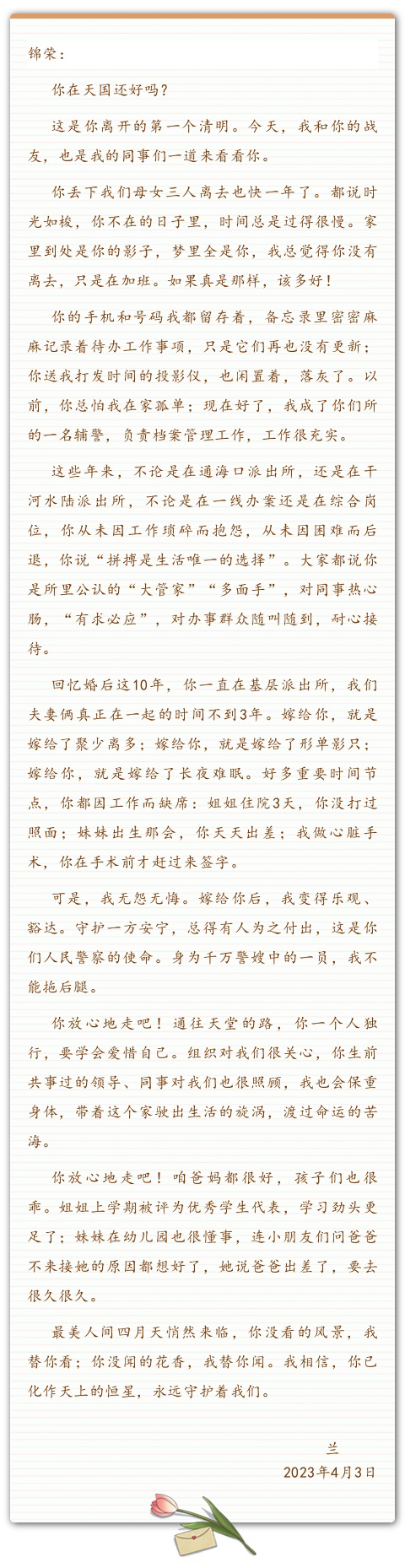 英雄之光丨写给因公牺牲警察丈夫的一封信:身为警嫂,我决不拖你后腿