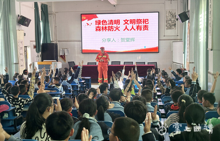 学校将传统节日与安全教育结合起来,教学生在平时的生活中怎样安全用火,怎样预防火灾,清明祭祖倡导无明火科学祭祀,共筑防火意识,让课堂“活起来”。 白石江街道“滴水成江”宣讲成员贺堂辉把森林火灾真实案例搬到学生眼前,与学生面对面交流绿色清明,文明祭祀,森林防火、人人有责话题。互动环节,学生积极参与互动,各抒己见,畅述自己对清明节的理解以及将会采取哪些实际行动来保护森林资源。