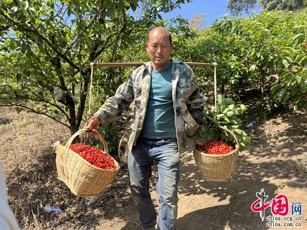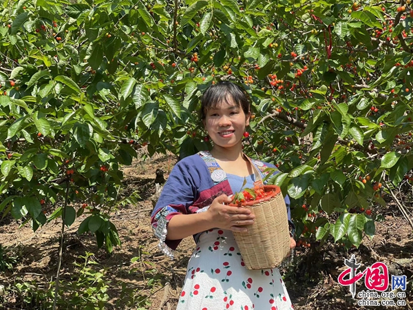 据介绍,米户樱桃以“中国红”和“玛瑙红”两个品种为主,2020年获得云南省及昆明市农产品“三品一标”绿色食品认证。自1996年开始种植樱桃以来,如今米户樱桃种植面积已达1万余亩,年产樱桃2500余吨,实现年产值3000余万元。此外,该村还结合樱桃产业发展蜂蜜、土鸡蛋、米户老白干等特色农产品,包装打造“米户”系列品牌,实现村民人均年收入万元以上。