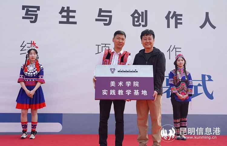 开幕式上,美术学院与本项目教学写生、采风的石屏县哨冲镇慕善村进行合作,建立实践教学基地并授牌。开幕式结束后,在云南文学艺术馆二楼展厅举行了“少数民族题材中国人物画写生与创作人才培养”结项作品展专题研讨会,就艺术的民族性、中国人物画创作、艺术培训相关问题展开探讨,进一步发挥了项目的学术效应。