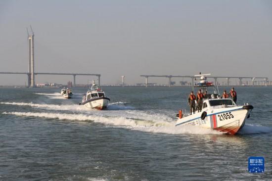 广东海警局联合海上执法相关部门对重点海域进行海上编队巡逻(2022年10月11日摄)。新华社发(江子波 摄)