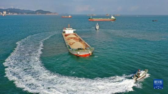 福建漳州海警局执法船在漳州东山湾海域开展海上常态化巡航管控(2023年1月17日摄,无人机照片)。新华社发(蔡晓晔 摄)