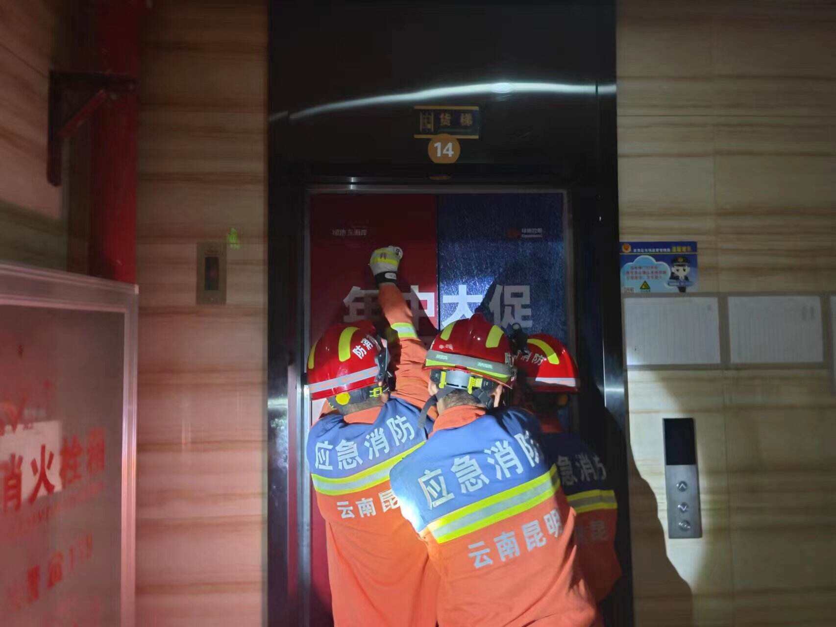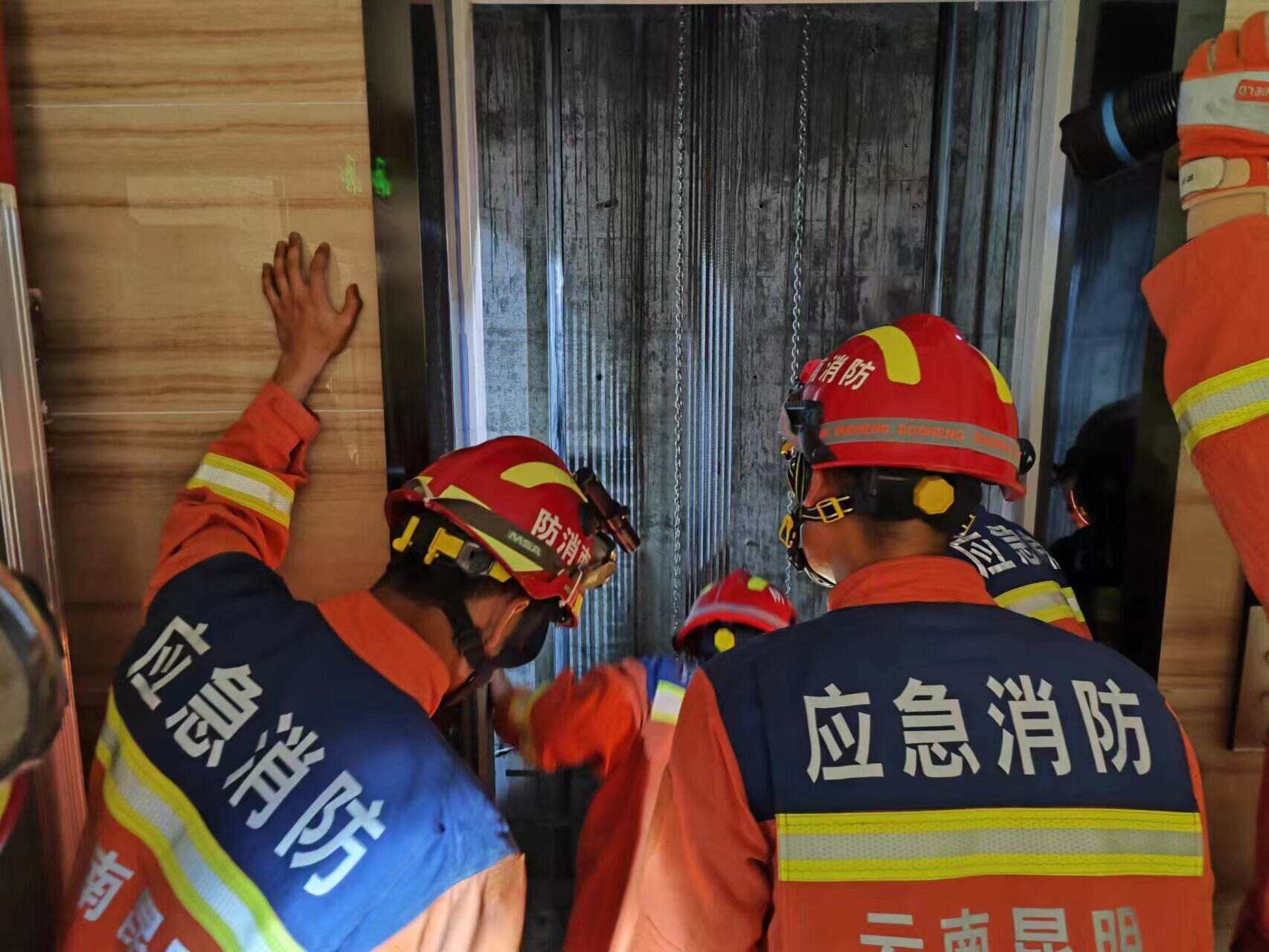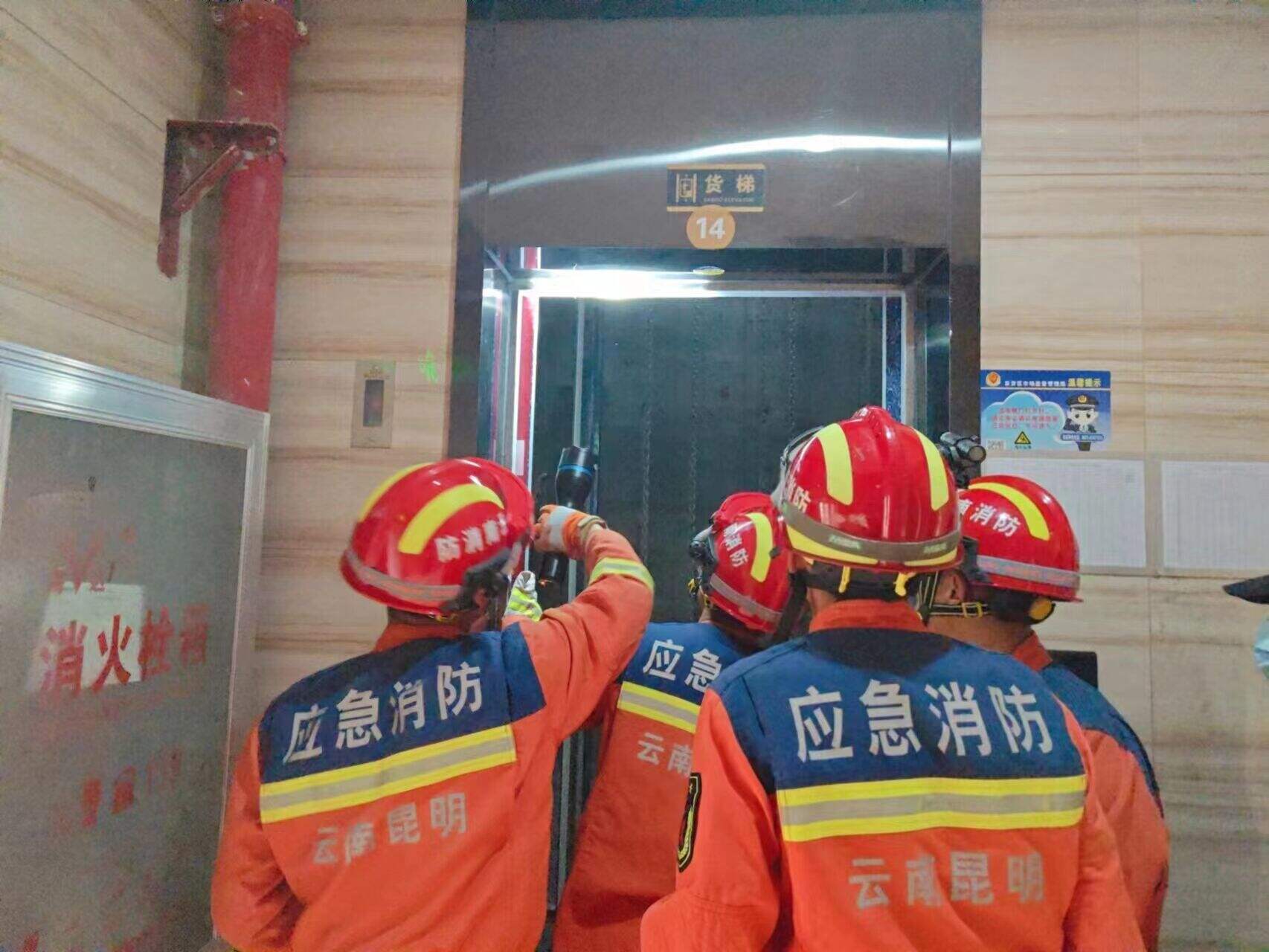 4月8日17时2分,停电导致昆明市呈贡区绿地·东海安·海逸名苑小区有多名人员被困于电梯内,情况紧急,急需救助。呈贡区消防救援大队接警后,紧急调派彩云南路站2车10人、大学城站1车7人前往处置。