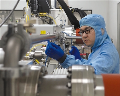 在合肥本源量子计算科技有限责任公司生产车间,技术人员正在进行生产操作。代群 摄
