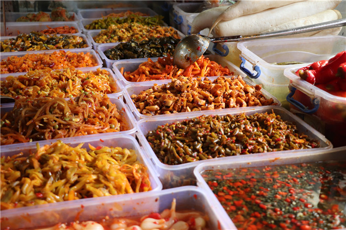 红的酸海椒、绿的豇豆、白的粉的萝卜……泡菜的清香嫩脆、鲜辣酸爽和辛辣劲道交融在一起,才是最大的圆满。