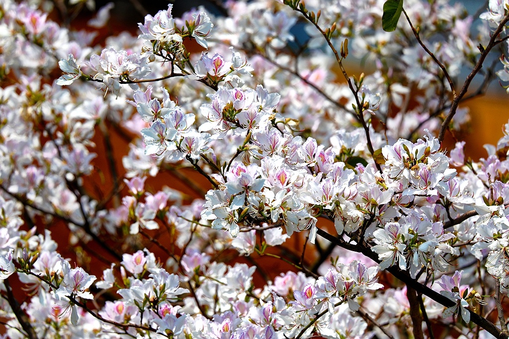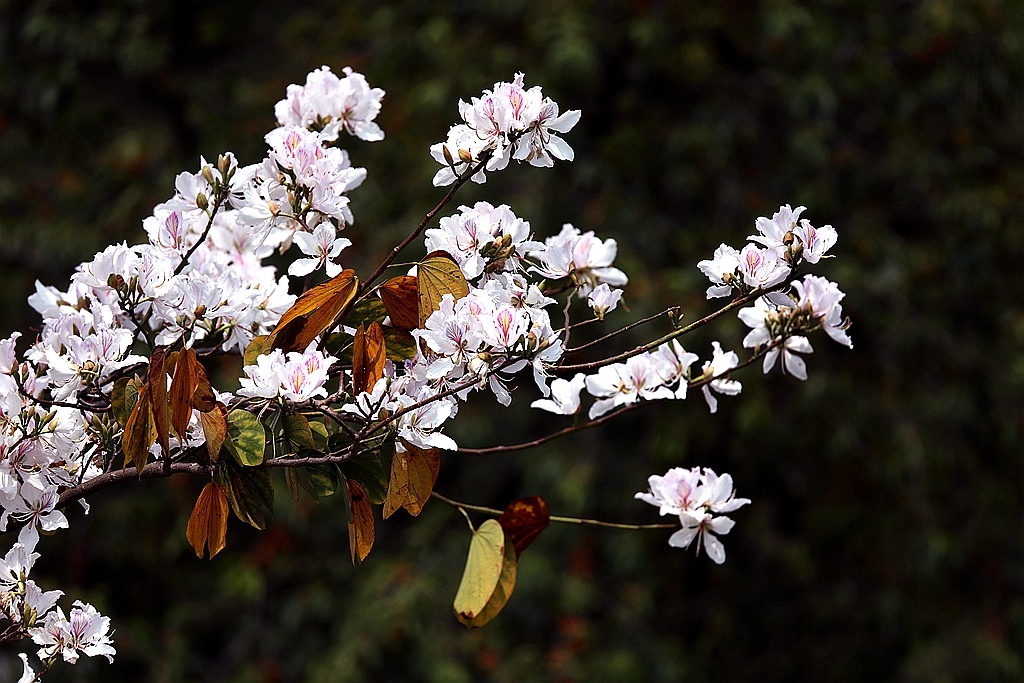 进入四月,丘北县普者黑国家5A级旅游景区内的八道哨乡白脸山村,山峰上一株株洋紫荆美丽绽放,远观近看,山花烂漫、清丽脱俗,鸟儿在花丛中跳跃舞动,展现出一幅幅美丽的大自然图景。(丘北县融媒体中心 马卫忠)