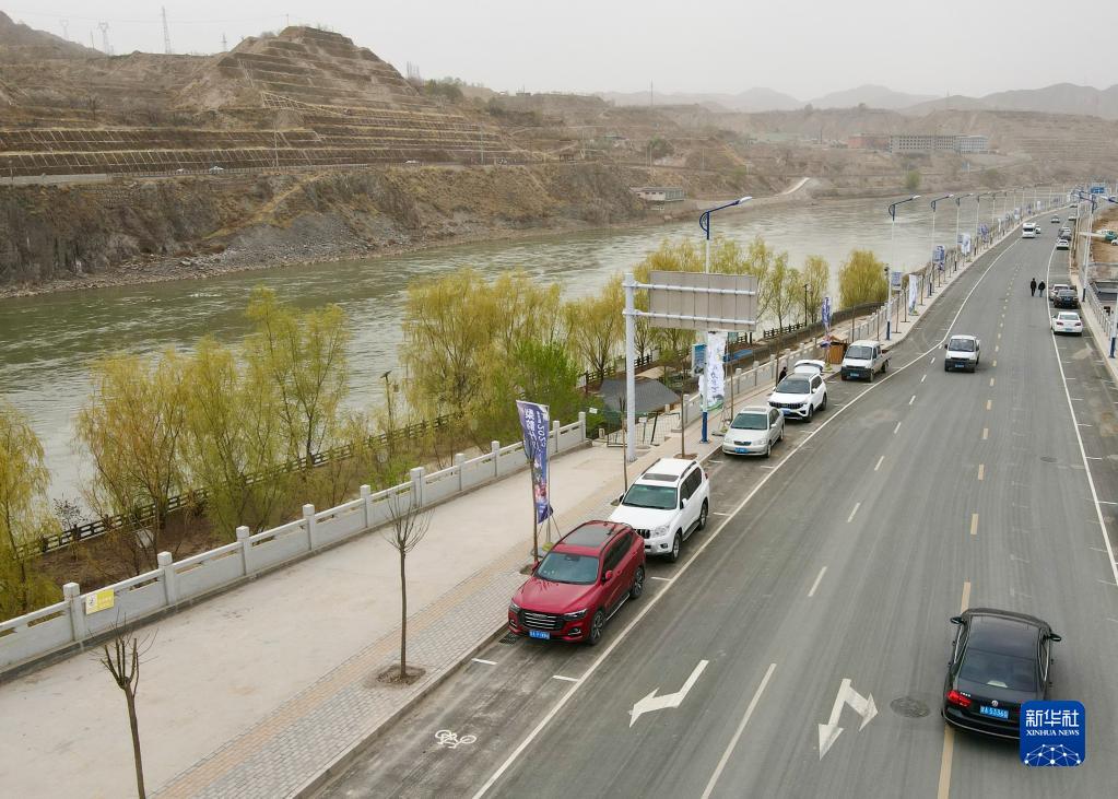 这是4月10日在兰州市皋兰县什川古梨园拍摄的景区配套道路(无人机照片)。新华社记者马希平/摄