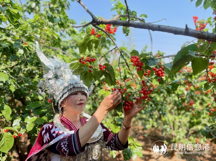 昆明信息港讯 记者段佳琪 近段时间,昆明市富民县赤鹫镇4000亩樱桃红遍山头,樱桃园内一片繁忙和喜悦。4月11日,记者从赤鹫镇2023年樱桃节新闻发布会上获悉,樱桃节期间,市民游客来到赤鹫,除了游园采摘樱桃,还可以参与汉服文化巡游,体验织布、碾米、做豆腐等农事活动,欣赏田园风光,享受一场沉浸式的生态乡村旅游。