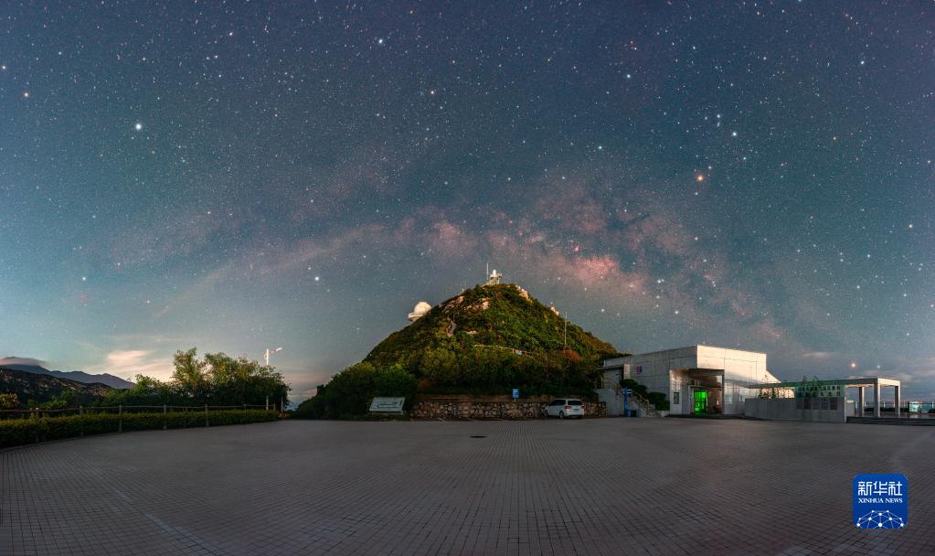 位于西涌社区的深圳市天文台及上空的银河(堆栈照片,2022年6月29日摄)。新华社发(李德铼/摄)