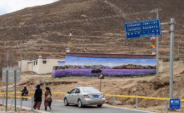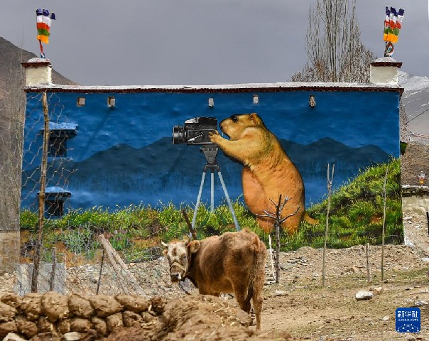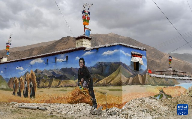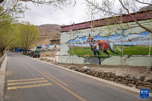 这是4月10日在拉萨市达孜区章多乡恰村拍摄的墙画。新华社 记者晋美多吉/摄