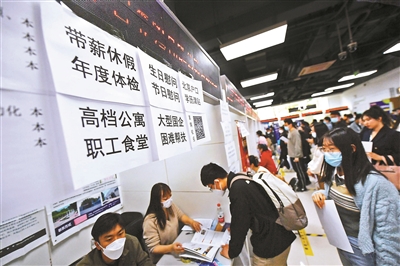 12日的双选会现场气氛火热,手持简历的毕业生们驻足企业招聘展台,或阅读招聘信息或向企业招聘负责人详细询问,一些重点企业的展台前更是排起了长队。来自首都师范大学光电专业的赵同学已经提前对本次招聘企业做了详细“功课”,她告诉北京青年报记者,自己希望毕业后留京发展,更倾向于较为稳定的国企,想通过双选会找到专业对口的工作。另一位来自中央民族大学的胡同学是研究生应届毕业生,手握两个offer的她仍想再看看机会。“我希望留京发展,比较看重企业能否解决落户问题,希望能找到更满意的工作。”胡同学说。据悉,本次双选会吸引了近2000名毕业生报名参加。