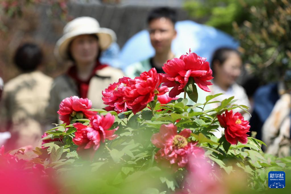 4月9日,游客在浙江省嘉兴市南湖风景区观赏牡丹。新华社发(金鹏摄)