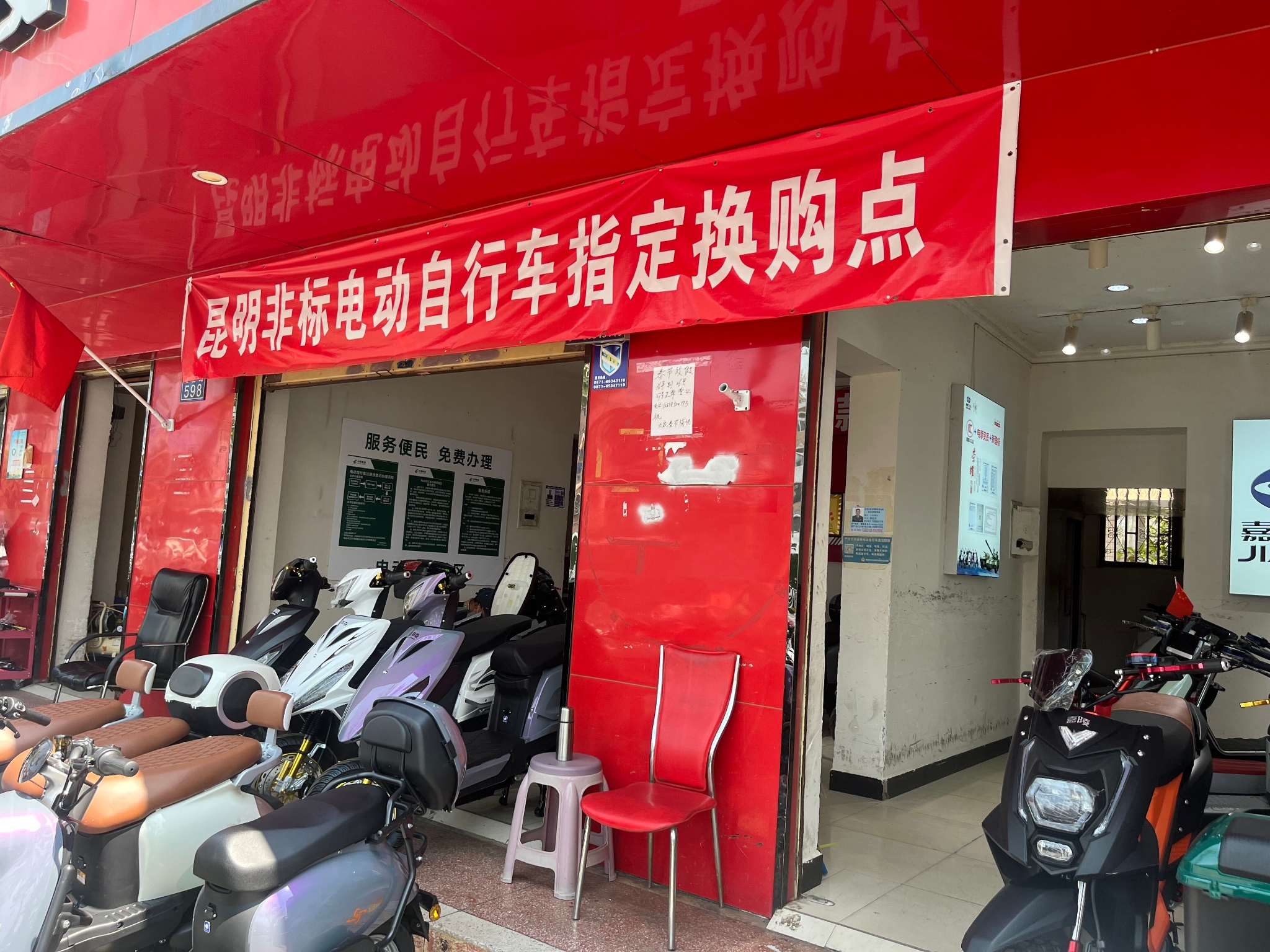 “这款电动车体验感还不错,看着也轻便。”小刀电动车店门口,一位市民正在试骑新车,店里挂着一个牌子,上面写着“昆明非标电动自行车淘汰置换指定换购点”,工作人员任先生说,这段时间电动车的销量比平时好,从本月开始至今已经售出了30多台,几乎都是非标电动车换标准的。“如果原来的电动车不是小刀品牌,也能参与以旧换新政策,刚刚有名顾客的旧车能抵扣600元,新车3600元,她就只需要出3000元。”