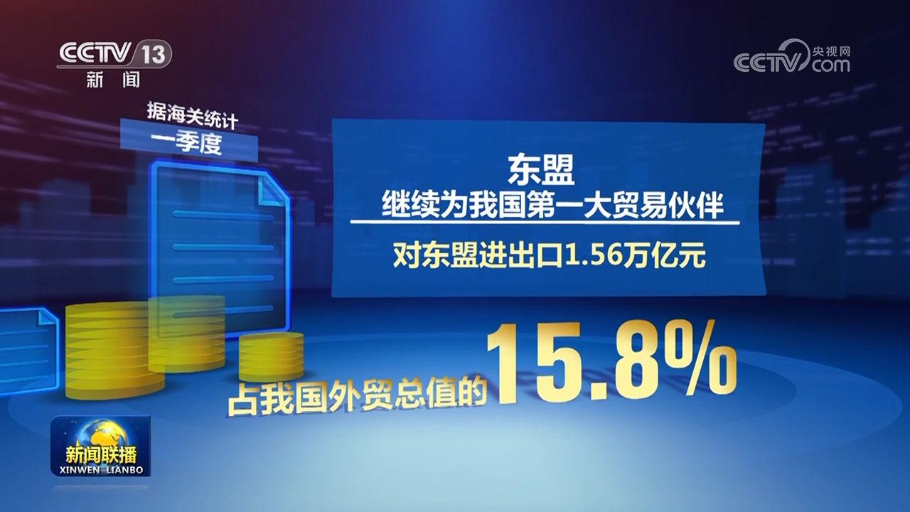 一季度,我国外贸结构持续优化,一般贸易进出口6.46万亿元,同比增长7.9%。东盟继续为我国第一大贸易伙伴,对东盟进出口1.56万亿元,占我国外贸总值的15.8%。对欧盟、美国、日本和韩国分别进出口1.34万亿元、1.11万亿元、5464.1亿元和5284.6亿元。