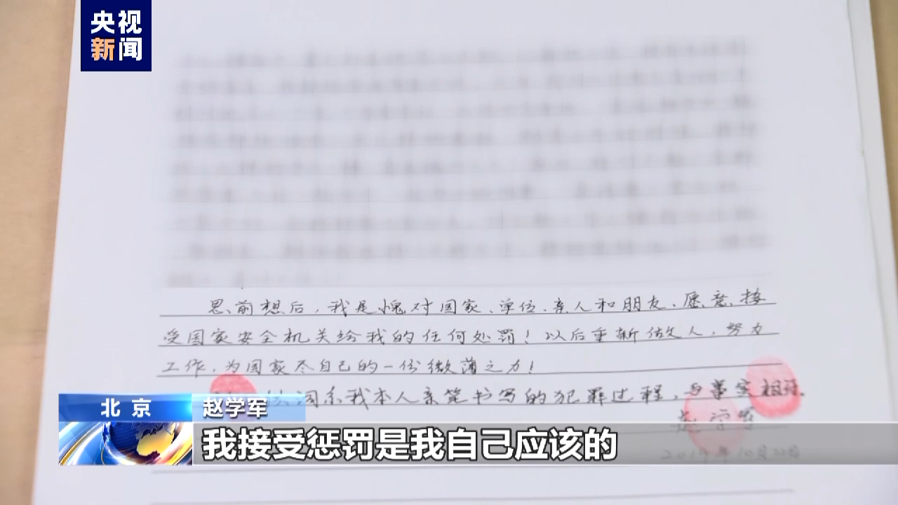 赵学军:无事献殷勤,非奸即盗。他请我吃饭,本来就没安什么好心,我还乐呵跟人家吃去。其实我自己的一个根本问题就是,我对自己没有原则,贪图小利,把自己保密身份给忘了,人家是有备而来,人家是有目的的,我接受惩罚是我自己应该的。(总台央视 记者王莉 于是达 范月鸣 刘苏)