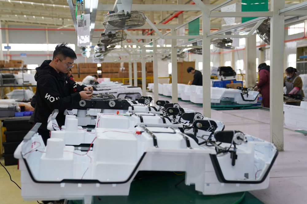 3月16日,工人在河北省邢台经济开发区一家外贸企业生产车间组装童车产品。新华社记者 骆学峰 摄
