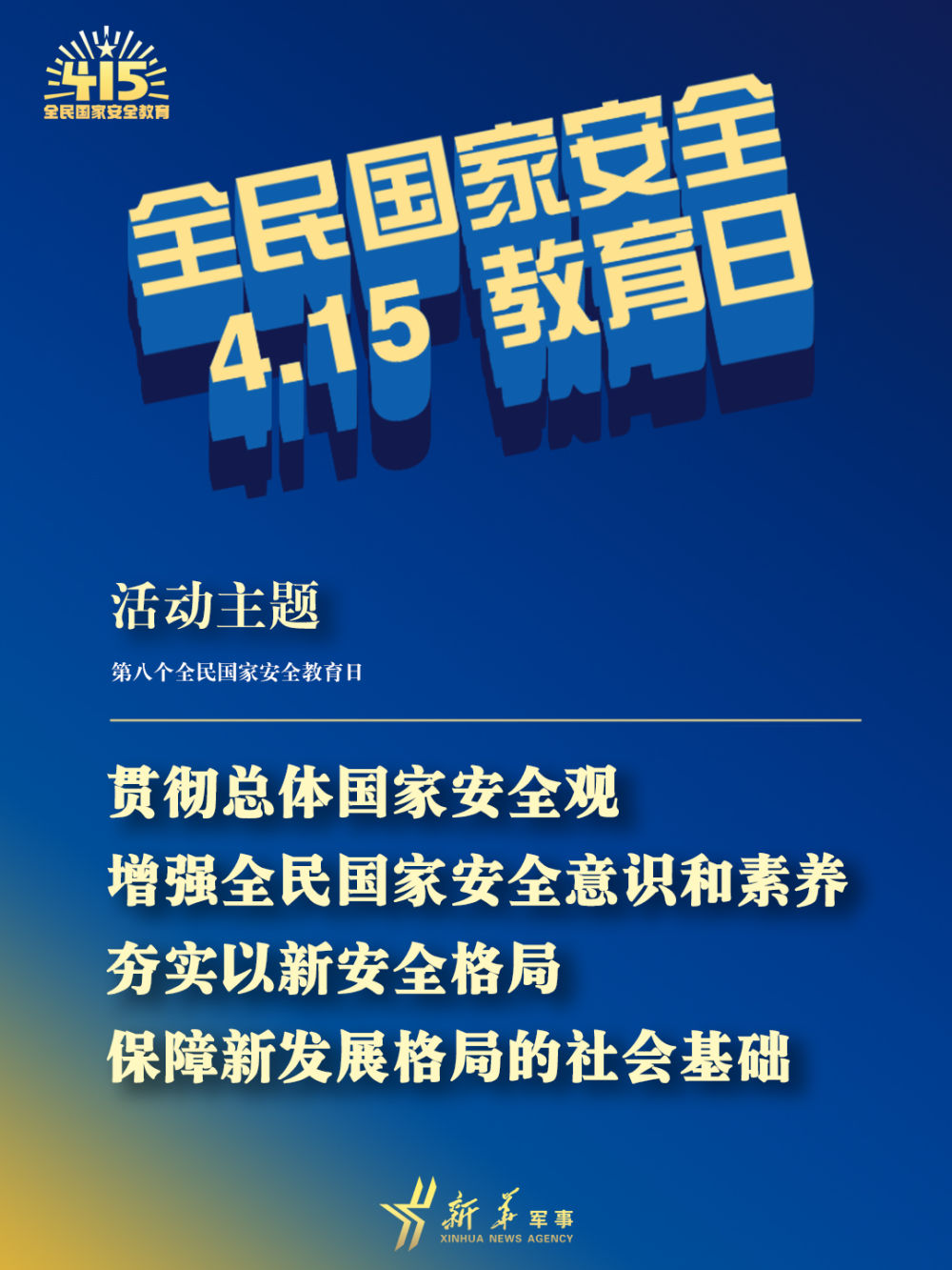 今年4月15日是第八个全民国家安全教育日。今年全民国家安全教育日的活动主题为“贯彻总体国家安全观,增强全民国家安全意识和素养,夯实以新安全格局保障新发展格局的社会基础”。