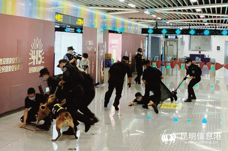 昆明信息港讯 记者合宇聪 4月15日,在第八个全民国家安全教育日到来之际,昆明市公安局反恐怖支队、昆明市公安局城市轨道交通分局联合昆明轨道交通集团,在昆明地铁5号线广福路西口站开展全民国家安全教育日主题宣传活动。