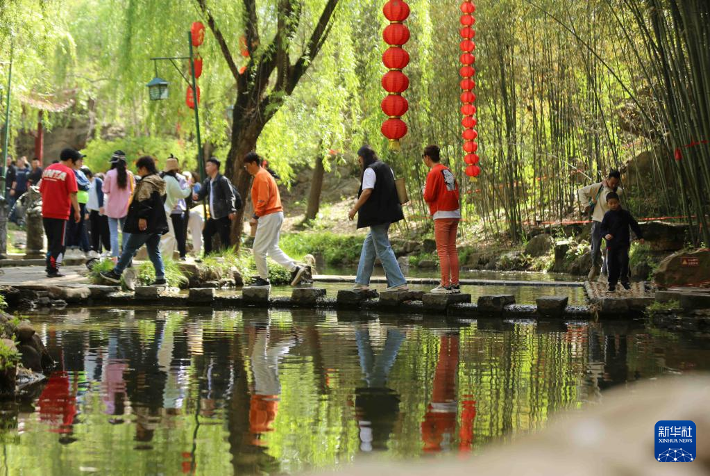 4月16日,游客在沂南县铜井镇竹泉村游玩。新华社发(王彦冰 摄)