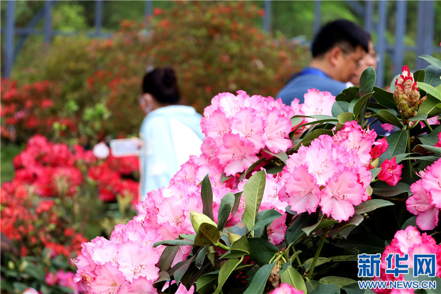 游客在井冈山“映山红霞”杜鹃花培育基地赏花拍照。新华网 王晓震 摄