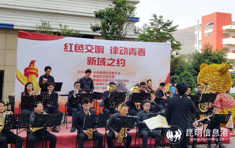 昆明信息港讯 记者李丽朱 4月20日, 在“五四”青年节到来之际,新域社区党委组织社区团支部联合非公党组织云南青年交响乐团,在辖区开展主题为“红色交响律动青春.新域之约”露天红色交响乐演出活动。