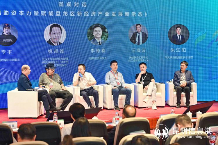 圆桌论坛环节,岭岩资本合伙人张文舵,华大共赢投资董事总经理朱江阳,武汉大学科学技术发展研究院副院长、武汉生物技术研究院副院长姚超雄,德鼎投资合伙人李德春,天使联合汇秘书长、众汇资本管理合伙人汪海波、摩尔线程摩尔学院院长李丰,围绕《借助资本力量赋能盘龙区新经济产业发展新常态》进行了深入对话,激荡出盘龙区科技创新及产业发展的全新视角和澎湃活力。