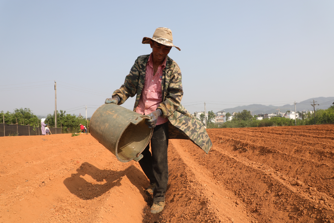 开沟、施肥、放种、覆土……4月18日,罗平县银源种植合作社负责人陈英雇请了十多名工人,正在忙着种植小黄姜。该种植地位于腊山街道青草塘村,是陈英第3年种植小黄姜了。如果采用传统的种植方法,该地块将会由于土壤连作障碍减产或姜瘟病导致整片小黄姜绝产绝收。