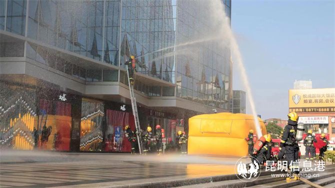 昆明信息港讯 4月21日,官渡区政府组织开展大型商业综合体灭火救援实战演练,全面提升队伍快速反应和灭火救援作战能力,切实做好大型商业综合体灭火救援准备工作。