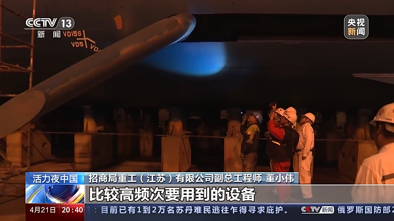 招商局重工(江苏)有限公司副总工程师 董小伟:减摇鳍,看它是不是能够良好做动作,因为这是船在以后的运营中要高频次用到的设备。目前来说,效果蛮好的,应该来说达到我们预计的目的。