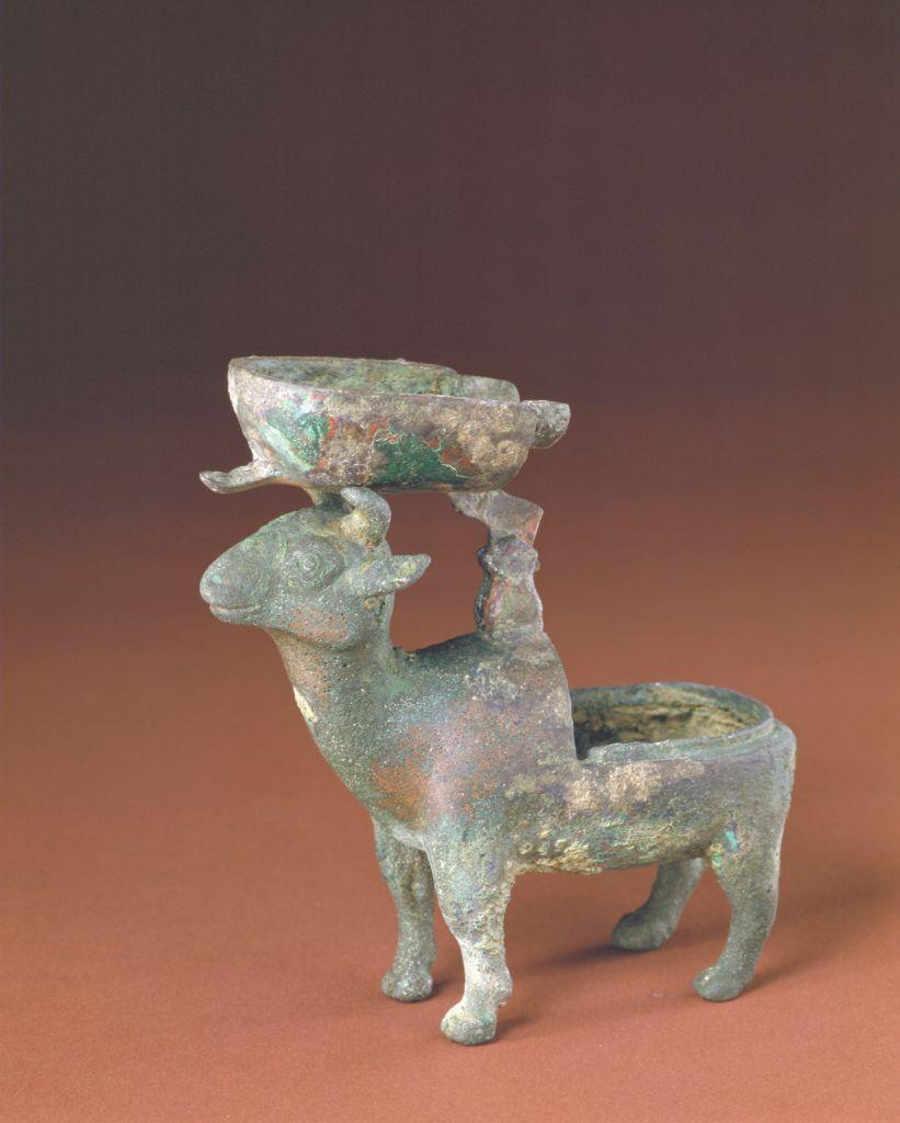 铜羊灯,北京故宫博物院藏。汉代的灯主要以脂膏为燃料,一般是动物或植物的油脂。使用时将灯炷缚成束浸在脂里点燃照明,古人称其为“膏烛”。