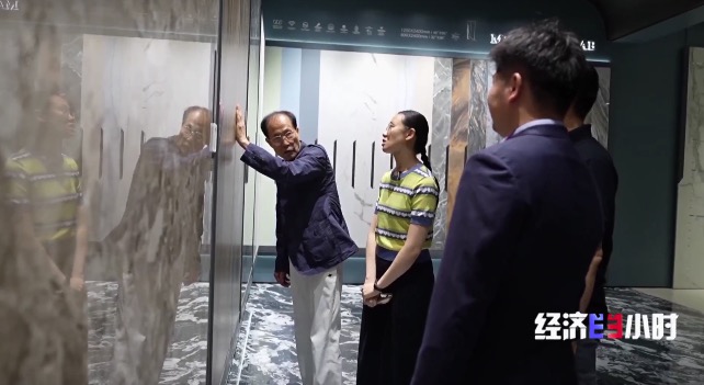 当看着一块最大弯曲度可达180°的曲面岩板,金兴淅表现出浓厚兴趣。