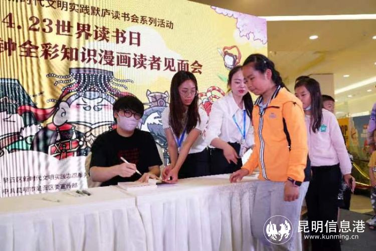 4月22日,呈贡区新时代文明实践默庐读书会系列活动之“赛雷三分钟”全彩知识漫画读者见面会主题活动在七彩云南第壹城火热举办。