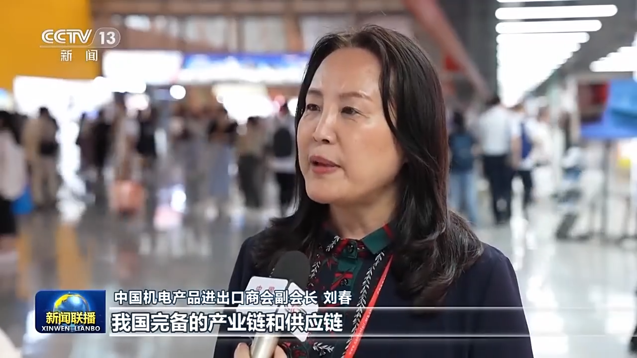 中国机电产品进出口商会副会长 刘春:我国完备的产业链和供应链,实际上使我们“新三样”的发展具备了重要的一个基础,我们国家的这种前瞻性的和一种持续性的政策,支持了我们企业在“新三样”这方面的发展 。