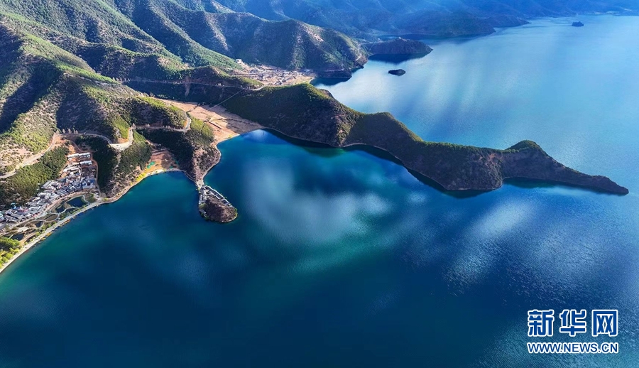 航拍视角下的泸沽湖美景。新华网发 崔永江/摄