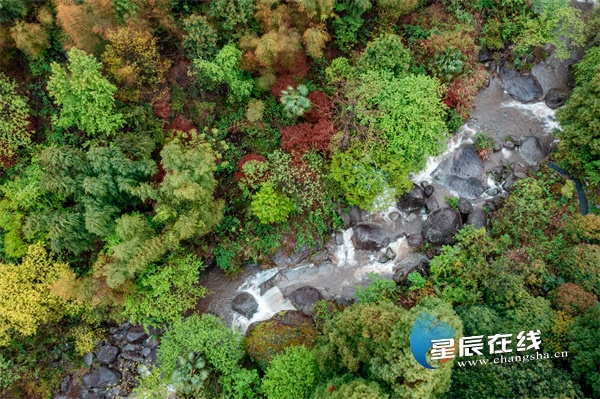 为什么大围山能摘得“国字号”?它和别的山比有哪些不一样?随着了解的深入这些问题迎刃而解。“千年长旱不断流,万年连雨水碧青。”大围山是浏阳河的发源地,蕴含丰富的水资源,年径流量达1200立方米/秒,我们行至山间,耳边始终响起潺潺水声,不曾间断。童洪告诉我们,他很热爱马拉松运动,每天都会在山里跑个半小时,大围山植被覆盖率高达99.5%,林间空气负氧离子含量达85900个/立方厘米,每天在“天然氧吧”里跑步感觉身体都硬朗了许多。
