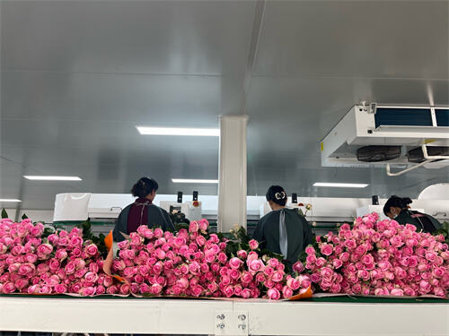 在墩子花卉市场,鲜花都以“车”这个数量单位进行交易。批发商根据玫瑰的品质、色泽度、有无病虫害等决定是否购买。交易完成后,再通过冷链物流将鲜切花迅速发往全国各地。春节以来,墩子花卉市场销售量持续上涨,在这里平均几秒钟就能完成一笔交易。