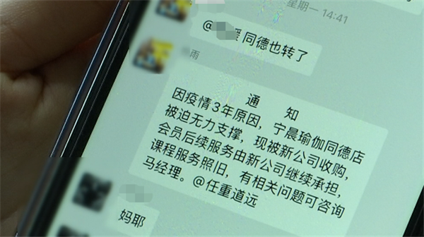 4月9号,宁晨瑜伽和谐店的学员们收到了店家发布的“店铺转让通知”,店家告诉他们两周后即可恢复正常营业,可直到4月22日,这家店依然大门紧锁。