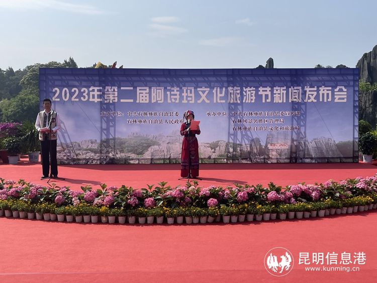 昆明信息港讯 记者龙泉积 4月24日,2023年第二届中国·石林阿诗玛文化旅游节新闻发布会在石林风景区召开。记者获悉,本届阿诗玛旅游文化节从5月1日—5月10日,期间将开展十大系列活动,为“五一黄金周”前来石林游玩的八方宾客送上一场文旅盛宴。