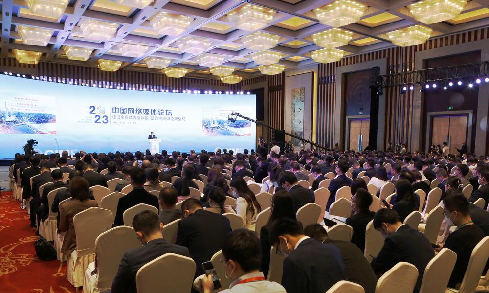 4月22日,2023中国网络媒体论坛开幕式暨主论坛现场。新华社记者毛俊 摄