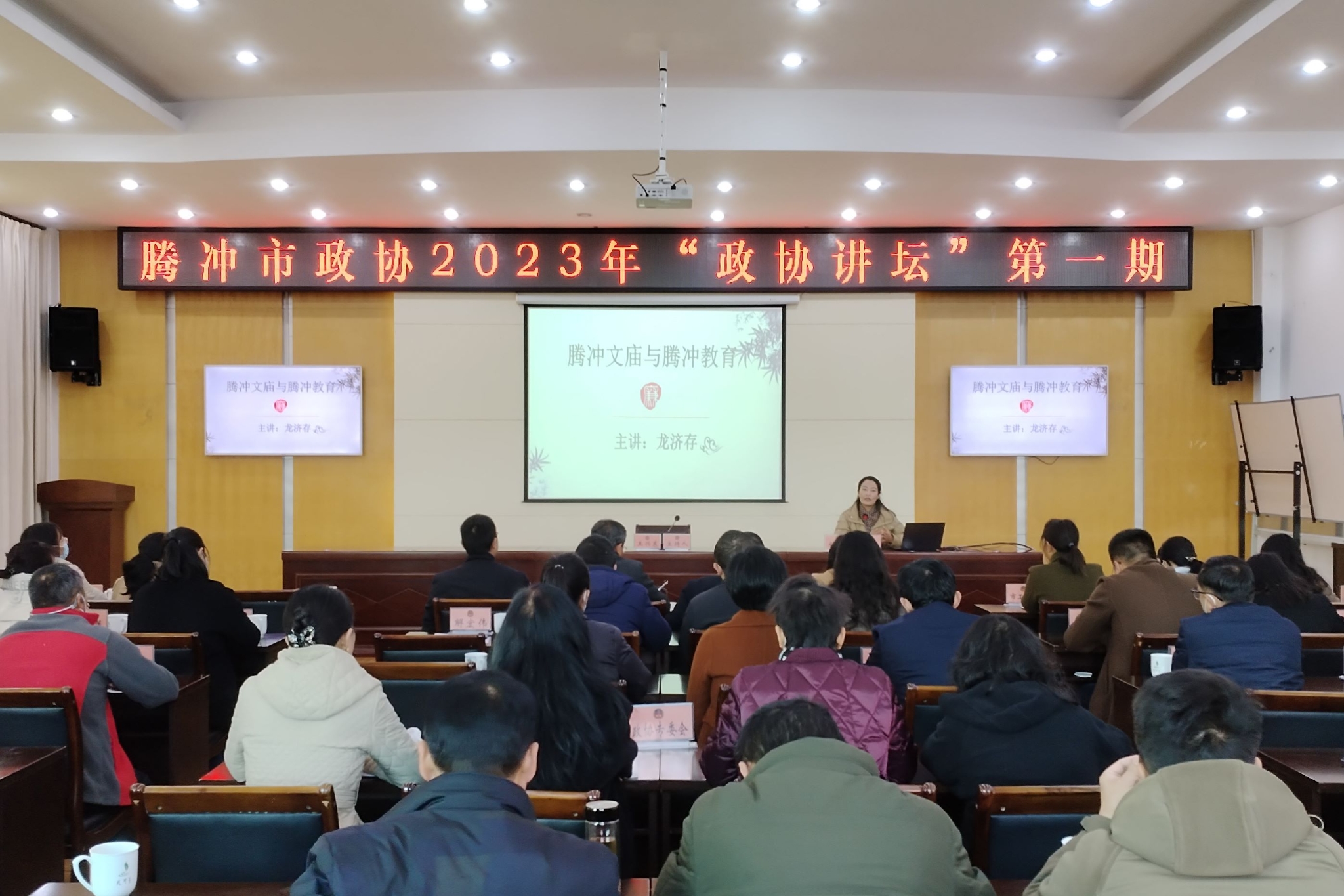 “‘政协讲坛’是腾冲市政协为加强委员学习培训、提升委员履职能力、发挥委员主体作用而创建的学习品牌,旨在以讲促学,切实加强市政协‘两支队伍’履职能力建设,为腾冲经济社会高质量跨越式发展积极建言献策。”腾冲市政协主席杨存宝介绍。