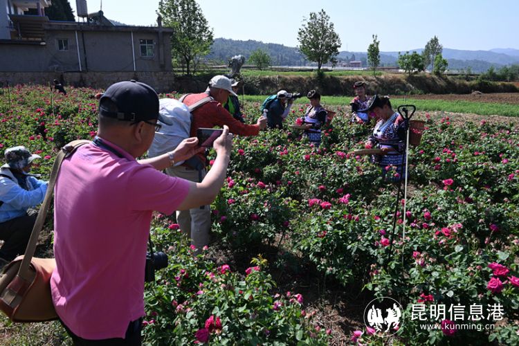 昆明信息港讯 记者王素晶 2023年三迤玫瑰老卤酒文化节暨采花制卤启动仪式于4月25日在酒业专属玫瑰花种植基地隆重举行。彩龙社区优质创作者、酒业人士、摄影爱好者、云南省餐饮业人士共计百余人参与了此次活动,共同探寻“昆明记忆”。