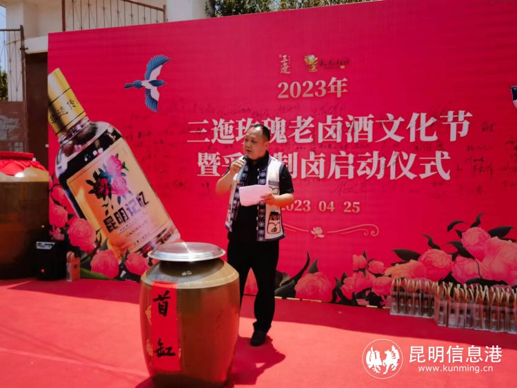 云南三迤酒业董事长、云南玫瑰老卤酒非遗项目代表性传承人陶俊勇致辞。记者王素晶/摄