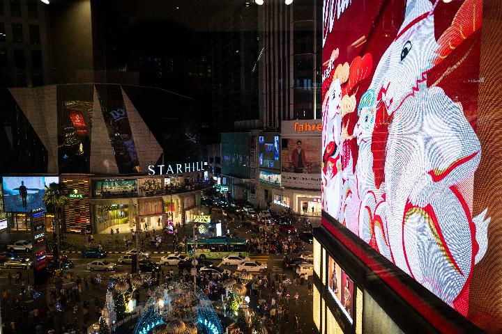 2022年12月26日,马来西亚吉隆坡一家商场播放兔年主题广告。(新华社记者朱炜摄)