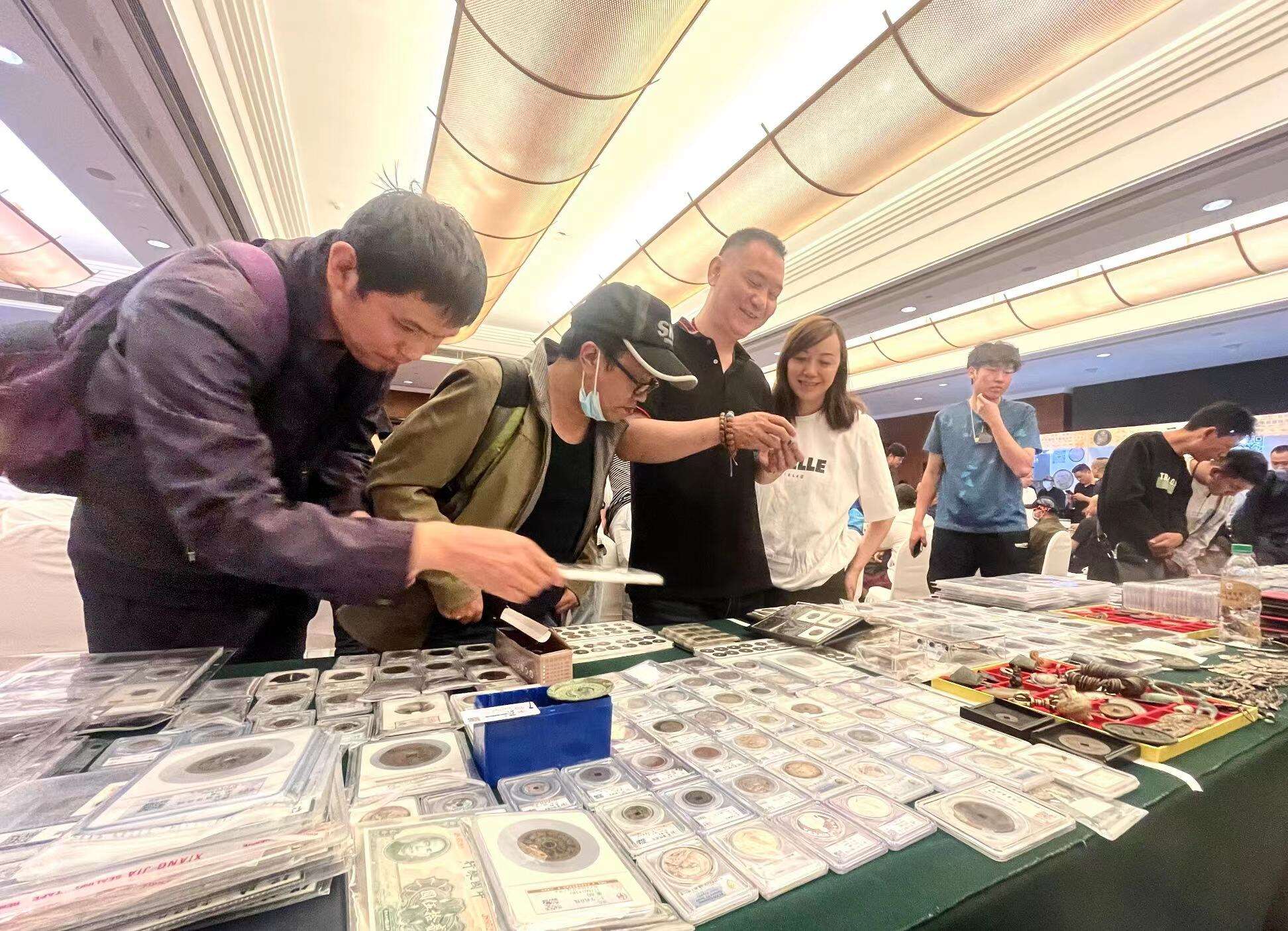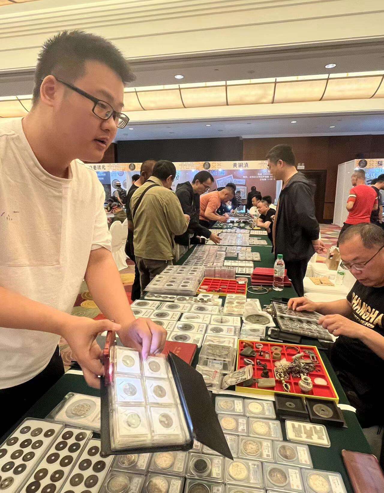 25日,一整天的现场交流会,吸引了北京大晋浩天国际拍卖公司、广州悟禅轩钱币、大汉泉庄、滇南藏、壹生追求、方乾评级、福禄堂-云南幽泉、黄铜滇、古玩今玩、云中之龙、G-U-O老银元等80余家钱币参展商摆摊交流,从历代行用钱币、厌胜花钱,到铜元、银元、银锭、像章、铜杂等,收藏品琳琅满目,交流积极踊跃,交易十分火爆。