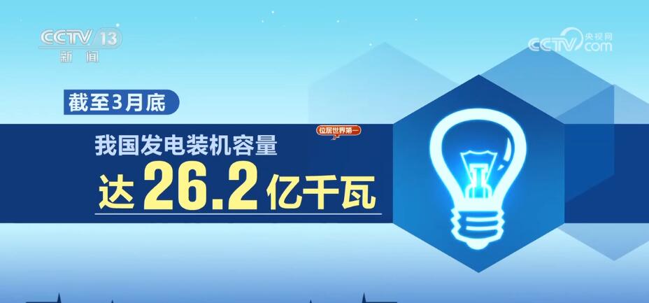截至3月底,我国发电装机容量达26.2亿千瓦,位居世界第一。其中,非化石能源发电装机容量13.3亿千瓦,同比增长15.9%,占总装机容量比重首次超过50%,达50.5%,接近美国非化石能源发电装机容量的3倍。