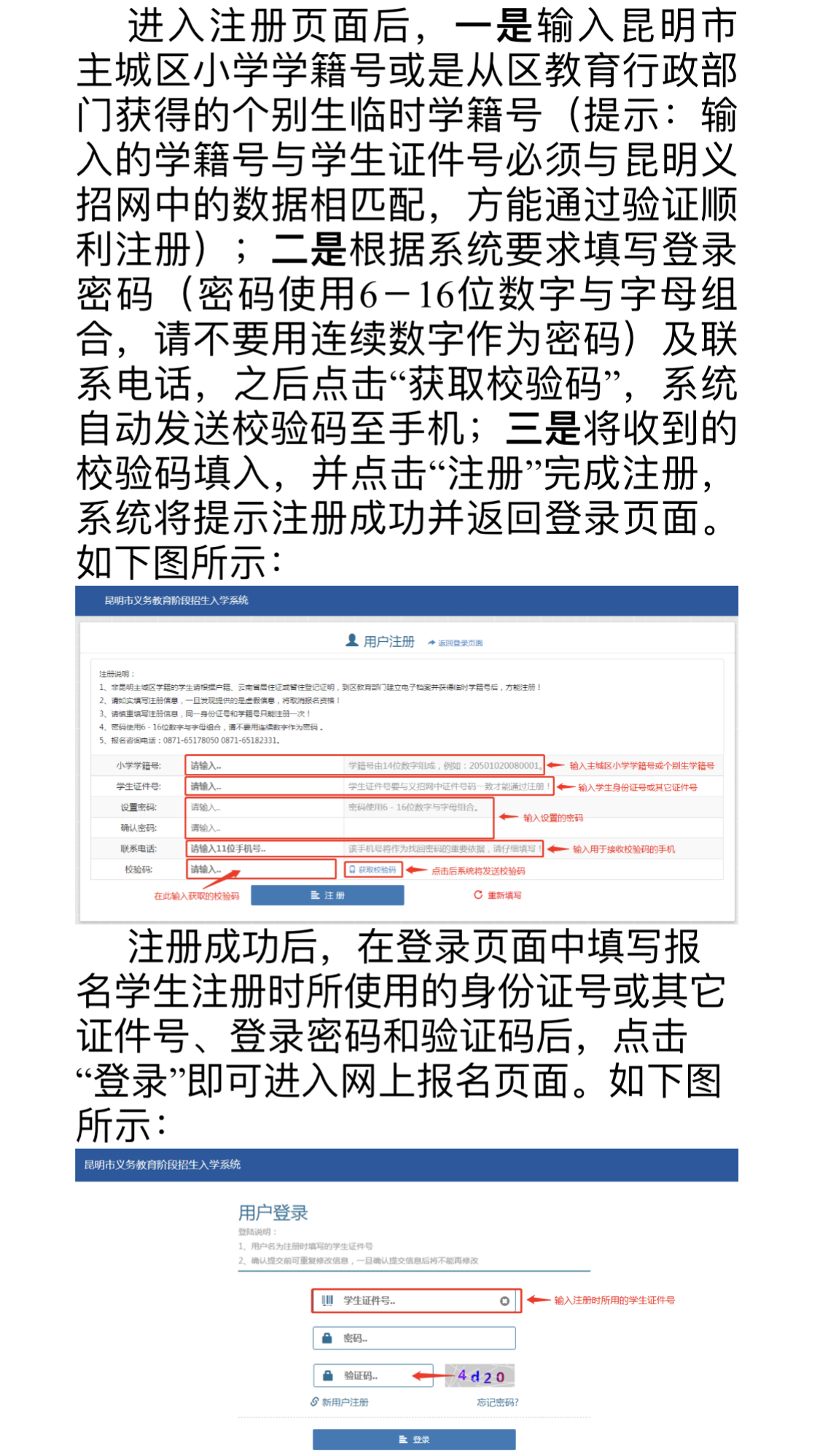 非昆明市主城区学籍的六年级学生,按相应的区教育体育局要求,建立个别生电子档案后,再登录“昆明义招网”报名。
