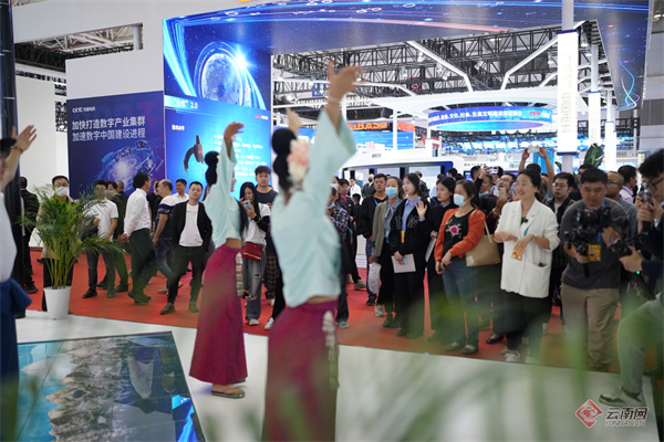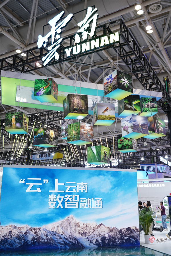 云南展位以“彩云之下有云南,云南数智有云端”为布展设计理念,按照推进数字技术与经济、政治、文化、社会、生态文明建设“五位一体”深度融合和“壮大资源经济、壮大口岸经济、壮大园区经济”进行策展构思,基于云端模块,结合“云”形式,分数字经济、数字政务、数字文化、数字社会、数字生态文明建设五大板块进行展示。